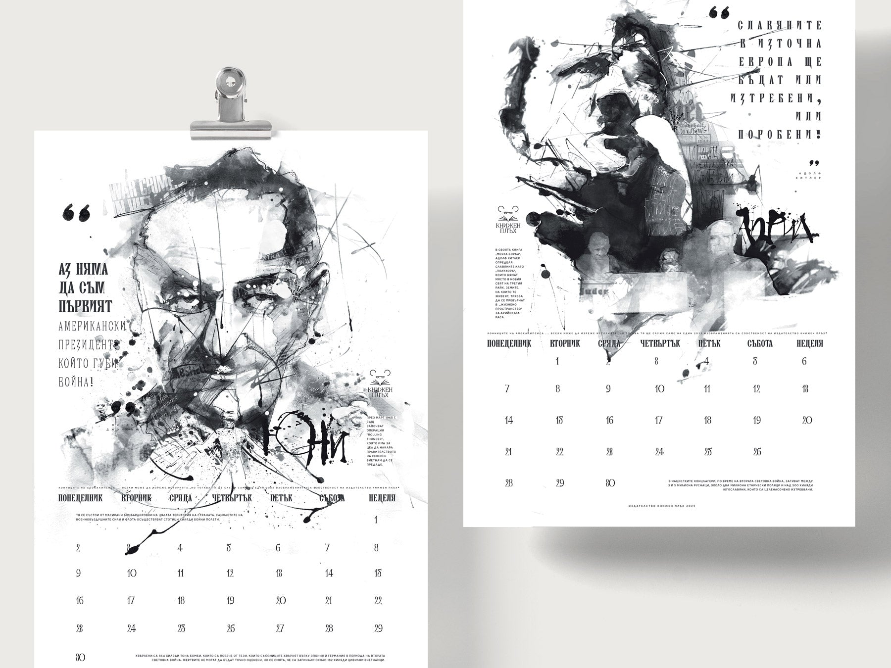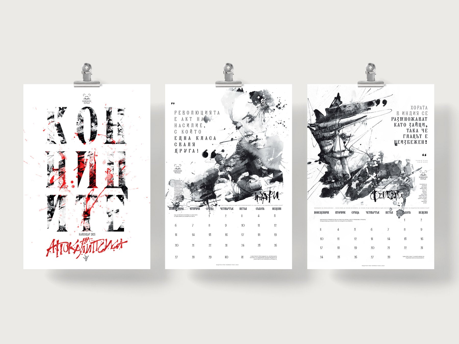 Календарът за 2025 г. „Конниците на апокалипсиса“ на издателство Книжен плъх събира в себе си дванадесет ярки исторически фигури на XX в. Целта ни е да покажем как времето постепенно изтрива спомените ни и как миналото изчиства образите на известните личности. Каква е цената на победата? Струва ли си славата? Научихме ли си уроците? На тези и на още много други въпроси ще може да си отговорите, прочитайки текстовете, преплетени в невероятните картини, създадени специално за Вас.